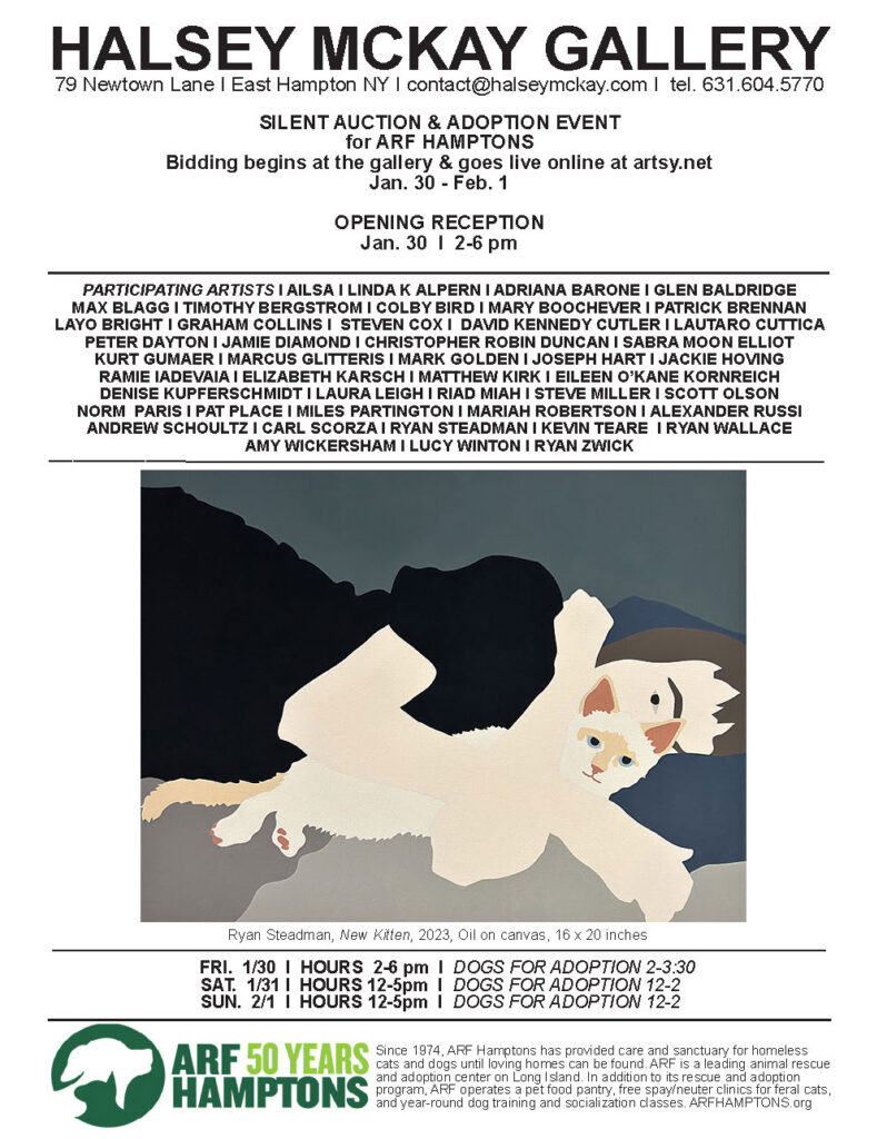 Please join ARF Hamptons at the Halsey McKay Gallery on Newtown Lane in East Hampton for a 3 day Silent Auction Art Fundraiser and Adoption Event to benefit the animals – January 30 – February 1.